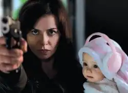 Press releases describe Gwen in light of contradictions between her heroic and conventionally feminine roles in the series; despite becoming a "tough, ruthless warrior, who loves the thrill of the fight" Gwen remains a "funny, salty, earthy woman who loves home and family".[91] Children of Earth sees Gwen become pregnant by husband Rhys;[15] a storyline which IGN writer Asham Haque thought provided "one of the few hope-giving threads" in the serial.[122] She gives birth to a baby girl, Anwen, between the third and fourth series.[91] Both Eve Myles and creator Russell T Davies have described this plot development as emblematic of a contradiction at the heart of Gwen's character. Myles, believing that motherhood gives Gwen a greater sense of responsibility, says it makes Gwen "even more human, and yet even more of a wonder woman".[81] Whilst talking about the show's fourth series, Davies suggested that it would be "irresistible" to use the image of "Gwen Cooper with baby in one arm and gun in the other" as promotion.[112] The production team have continued to emphasise this contradictory aspect to Gwen's character, which has proved popular with critics and viewers. For example, a promotional clip for Miracle Day features Gwen firing from her gun in one hand while protectively holding her baby in the other. Zap2it's Mikey O'Connell praised this as one of the trailer's best aspects, praising Gwen as "the coolest mum ever."[123] Reviewing the opening episodes of Miracle Day Mary McNamara of the Los Angeles Times identified "the dark humor" of the sequence as representative of "the top notes of the British Torchwood".[124] The Daily Telegraph's Catherine Gee praised the dichotomy between the character's two roles, stating that "Eve Myles's homely yet badass agent is incredibly charming".[125]