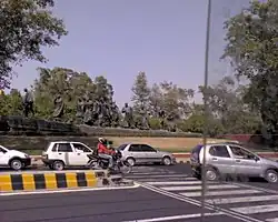 Gyarah Murti is a monument located in New Delhi, India, commemorating the country's struggle for independence under the leadership of Mahatma Gandhi. Devi Prasad Roy Choudhury is credited as its sculptor. An ensemble of eleven statues, ten represent people from diverse sociocultural, religious and economic backgrounds following Gandhi in the lead. Widely believed to depict the Dandi March, the statue has been replicated in other cities in India and was featured on the old 500-rupee currency note.[1][2]
