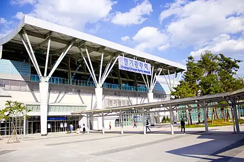 Gyeonggi Gwangju Station (Korean: 경기광주역; Hanja: 京畿廣州驛) is a railway station on the Gyeonggang Line of the Seoul Metropolitan Subway. It is located at Yeok-dong, Gwangju, Gyeonggi, South Korea.[1] By 2016, it served 8000-9000 passengers a day.[2]