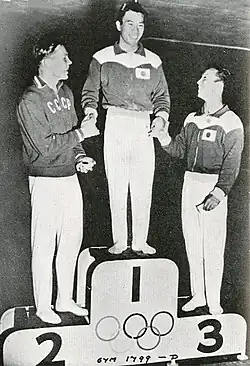 ![]() Medal presentation: Titov, Ono, and Takemoto | ||||||||||