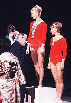 ![]() Katalin Makray, Polina Astakhova and Larisa Latynina on the podium | |||||||||||||