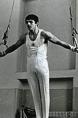The men's rings competition was one of eight events for male competitors in artistic gymnastics at the 1976 Summer Olympics in Montreal. The qualification and final rounds took place on July 18, 20, and 23rd at the Montreal Forum. There were 90 competitors from 20 nations, with nations competing in the team event having 6 gymnasts while other nations could have up to 3 gymnasts.[1] The event was won by Nikolai Andrianov of the Soviet Union, the nation's first victory in the rings since 1960 (and fourth overall). Another Soviet gymnast, Alexander Dityatin, took silver. The Soviet podium streak in the event reached seven Games. Dan Grecu earned Romania's first medal in the rings (and in any men's gymnastic event). Japan's three-Games gold medal streak and five-Games podium streak in the event ended as the nation's best results were fifth and sixth places.