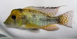 - ^ Malabarba, Luiz R.; Malabarba, Maria Claudia; Reis, Roberto E. (2015). "Descriptions of five new species of the Neotropical cichlid genus Gymnogeophagus Miranda Ribeiro, 1918 (Teleostei: Cichliformes) from the rio Uruguay drainage". Neotropical Ichthyology. 13 (4): 637–662. doi:10.1590/1982-0224-20140188. hdl:10183/144312. ISSN 1982-0224.