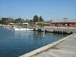 The little harbour is now a popular destination for pleasure boats during the summer months. Thanks to its sandy beaches, the village has also become one of Møn's summer house resorts.[4]
