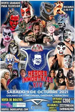 Héroes Inmortales XIV (Spanish for "Immortal Heroes fourteen") was a professional wrestling event produced and scripted by the Mexican professional wrestling promotion Lucha Libre AAA World Wide (AAA). The event took place on October 9, 2021, at Coliseo La Concordia in Orizaba, Mexico. It was the fourteenth Héroes Inmortales show, held annually in honor of the promotion's deceased founder Antonio Peña and features the Copa Antonio Peña tournament named in his honor.