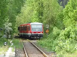 Before the use of DMUs of class 624 and 628 from about 1994, the line was operated for many years by locomotive-hauled trains usually formed as a push-pull service of Silberling carriages and class 212 diesel locomotives.