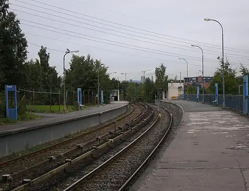 Høyenhall is a rapid transit station on the Lambertseter Line of the Oslo Metro. Served by Line 4, it is the first station on the Lambertseter Line not shared with any other line. It is located between Brynseng and Manglerud, 5.2 kilometres (3.2 mi) away from Stortinget.