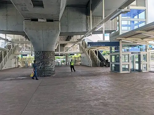 Hālawa station (also known as Aloha Stadium station) is a Skyline metro station in Hālawa, Hawaiʻi, serving Aloha Stadium, ʻAiea, Salt Lake, and Moanalua. The station is located alongside Kamehameha Highway above its intersection with Salt Lake Boulevard. It serves as the eastern terminus of the current rail system and opened on June 30, 2023.[2][3] The station has a 590-space park and ride lot.[4]