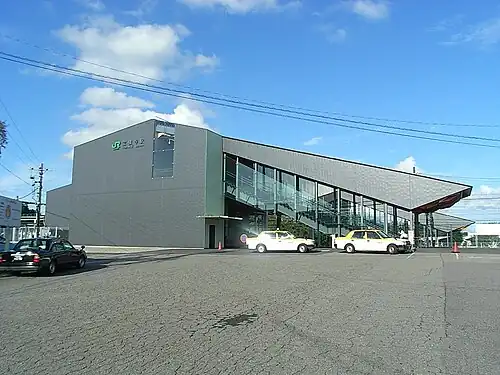 Hōshakuji Station (宝積寺駅, Hōshakuji-eki) is a junction railway station in the town of Takanezawa, Tochigi, Japan, operated by East Japan Railway Company (JR East). The station building was designed by Kengo Kuma and Associates. The station is also a freight terminal for the Japan Freight Railway Company (JR Freight).