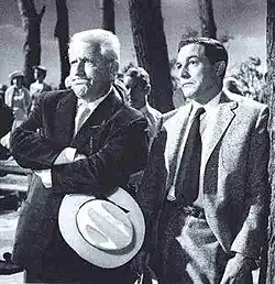 As a frank admirer of Nietzsche, Mencken was a detractor of representative democracy, which he believed was a system in which inferior men dominated their superiors.[2] Also, like Nietzsche, Mencken lambasted religious belief and the very concept of God, as he was an unflinching atheist. He was particularly hostile to Christian fundamentalism, Christian Science and creationism, and towards the "Booboisie", his word for the ignorant middle classes.[39][40][41] In the summer of 1925 he attended the famous Scopes "Monkey Trial" in Dayton, Tennessee, and wrote scathing columns for the Baltimore Sun (these widely syndicated) and American Mercury mocking the anti-evolution fundamentalists (especially William Jennings Bryan). The play Inherit the Wind is a fictionalized version of the trial, and as noted above the cynical reporter E.K. Hornbeck is based on Mencken. In 1926, he deliberately had himself arrested for selling an issue of The American Mercury, which was banned in Boston by the Comstock laws.[42] Mencken heaped scorn not only on the public officials he disliked but also on the state of American elective politics itself.