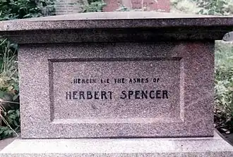 In 1902, shortly before his death, Spencer was nominated for the Nobel Prize in Literature, which was assigned to the German Theodor Mommsen. He continued writing all his life, in later years often by dictation, until he succumbed to poor health at the age of 83. His ashes are interred in the eastern side of London's Highgate Cemetery facing Karl Marx's grave. At Spencer's funeral, the Indian nationalist leader Shyamji Krishna Varma announced a donation of £1,000 to establish a lectureship at Oxford University in tribute to Spencer and his work.[20]