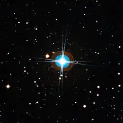 | Proper motion (μ) | RA: −14.303±0.017 mas/yr[1] Dec.: 8.058±0.016 mas/yr[1] |