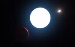 The brightest star, is a young A-type main-sequence star, and further out are two lower-mass stars.[4] A Jupiter-mass planet or a low-mass brown dwarf was once thought to be orbiting the central star, but this has been ruled out.[6][10]