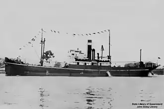 Built in 1921 by Stettiner Oderwerke, Stettin, Germany (now Poland) as the Nürnburg for Stettiner Neue Dampfer A G., Stettin.[1] She was sold to A/S Solskin, Oslo in August 1924 and renamed Solskin, before being sold in January 1925 to the Australasian United Steam Navigation Company and renamed Baralaba. She was requisitioned in May 1942 by the US Small Ships Command, however she was transferred to the RAN on 27 May and commissioned as HMAS Baralaba on 31 May. She was returned to her owners in February 1943.