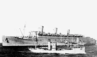 HMAS Bonthorpe (TR-8)[4] was an auxiliary minesweeper operated by the Royal Australian Navy during World War II. She was launched in 1917 by Collingwood Shipbuilding Company at Collingwood, Ontario, Canada. Bonthorpe was owned and operated by Albany Tug Company.[3] On 5 February 1940, Bonthorpe was requisitioned by the RAN for use as an auxiliary. She was decommissioned on 17 February 1945 and was reconverted to a trawler before becoming stranded at Cairns Inlet, Queensland in 1959.