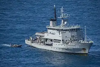 In late 2001, Melville began to operate in support of border protection operations in addition to her normal hydrographic duties.[3][4] In January 2002, Melville was repainted from white to grey.[3][4]