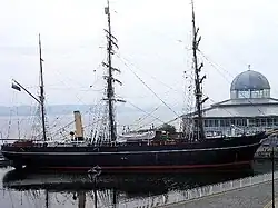 The steam barque Bloodhound was built as Yard No.53 in their Panmure shipyard at Dundee by Alexander Stephen & Sons for Newfoundland sealing operations.[1][3] She was launched on 2 August 1872 and completed in March 1873.[4] She measured 556 gross register tons (GRT) and 378 net register tons (NRT), and was 166.0 feet (50.6 m) in length, 29.1 feet (8.9 m) beam and 18.3 feet (5.6 m) depth.[3] The ship was rigged as a 3-masted barque and her Greenock Foundry Company auxiliary compound steam engine generated 312 indicated horsepower and drove a single screw propeller.[1][3]