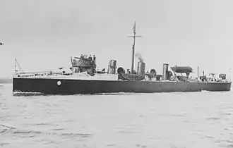 - ^ While many of the 27-knotters later carried both the two torpedo tubes and all 5 six-pounder guns, stability concerns prevented Handy from following suit.[10]