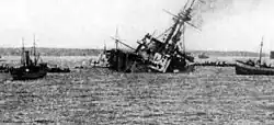 - ^ According to Conway's All the World's Fighting Ships 1906–1921, however, Majestic capsized in seven minutes and only 40 men were killed. See Preston, p. 7.