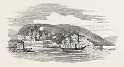 In 1855, she deployed to the Black Sea for operations in the Sea of Azov. On 3 June 1855, during the Siege of Taganrog, Boatswain Henry Cooper and Lieutenant Cecil William Buckley of Miranda landed destroying equipment and set fire to government buildings, despite the town being under bombardment and garrisoned by 3,000 Russian troops. For this action the pair were awarded the Victoria Cross. Captain Edmund Moubray Lyons of Miranda reported on 29 May 1855 that in the first four days of the squadron entering the Sea of Azov, the enemy had lost four steamers of war and 246 merchant vessels, together with corn and flour magazines to the value of at least £150,000.[7] During the Kerch operations on 17 June, Captain Lyons was mortally wounded, dying on the 23rd. Captain Robert Hall took command on the 24th as the Senior Officer in the Strait of Kerch.[5][8] Upon the cessation of hostilities, Miranda returned to home waters, paying off at Sheerness on 21 April 1857.[5][9]