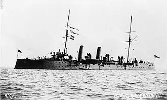 Psyche was commissioned on 2 May 1899 by Captain Francis Raymond Pelly, for service on the North America and West Indies Station, based at the Royal Naval Dockyard in the Imperial fortress colony of Bermuda.[2] Ships of the station's squadron exercised together in Bermudian waters and were maintained at the dockyard between extensive cruises around the western North Atlantic and the West Indies, visiting various British and foreign ports to "show the flag".[4] Commander Edmund Moore C. Cooper-Key replaced Pelly in command in June 1901. She was at Bermuda in March 1902,[5] visited Colón, Panama in early May,[6] and Havana in late May 1902;[7] and was in Nicaragua in July 1902, when the government captured revolutionists from an attempted coup.[8] The following month she left Bermuda homeward bound,[9] returning to Devonport on 20 August,[10] to pay off on 5 September when she was placed in the D division of the dockyard reserve.[11]