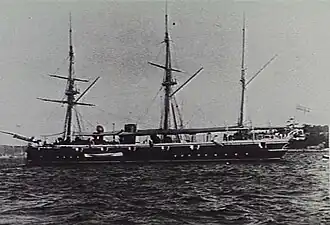 ![]() HMS Royalist anchored at Sydney c. 1890.