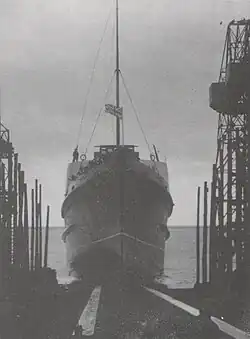On 17 November 1937, during a storm with associated south-easterly gales, Tynwald sustained damage whilst attempting to berth at Douglas. Earlier that day, her sister Fenella had fouled a mooring rope whilst also attempting to berth at Douglas, which prior to the construction of the Princess Alexandra Pier in 1984, was a notoriously hazardous port due to its exposure during periods of strong easterly wind. Taking that morning's sailing from Liverpool to Douglas, Tynwald experienced great difficulty trying to berth at the King Edward VIII Pier, and suffered damage to the belting on her starboard side, over a distance of approximately five metres, as well as suffering damage to her plating.[3] Finally she secured alongside and having discharged her passengers and mail, Tynwald departed for Liverpool at 15:50hrs taking the passengers and mail which should have left on Fenella's morning sailing, which had been cancelled due to her incident with the mooring rope.[3]