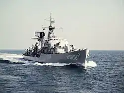 HNLMS Holland (D808) (Dutch: Hr.Ms. Holland) was the lead ship of her class of four destroyers built for the Royal Netherlands Navy in the early 1950s. HNLMS Holland is named after a former province of the Kingdom of the Netherlands[3] and was the twentieth ship with this name. In 1978 the ship was taken out of service and sold to Peru where it was renamed Garcia y Garcia. The ship's radio call sign was "PAOP".[4]