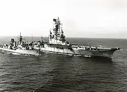 In 1955 Holland circumvented Africa steaming through the Suez Canal to Cape town. Upon return the ship was kept in reserve and laid up from 1955 until 1962.[6] The ship collided in 1965 with the Danish ship MV Mayumba of Texel.[6] 13 January 1968 the ship joint NATO STANAVFORLANT at Portland.[6] In June 1967 a courtesy visit to Chatham, with costumed Regiment de Marine re-enactors on board, commemorated the tercentenary of the Raid on the Medway. In 1969 she attended a naval review at Spithead together with her sisters Zeeland and Noord-Brabant, the cruiser De Ruyter and the frigates Van Nes and Evertsen.[6] Holland participated in the NATO exercises Razor Sharp in 1969 and Northern Merger and Save Pass in 1974.[6]