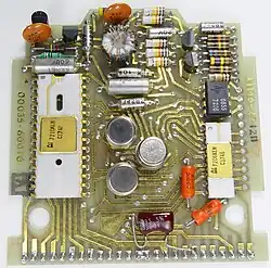 Internally, the calculator was organized around a serial (1-bit) processor chipset dual sourced under contract from Mostek and American MicroSystems Inc (pictured), processing Decimal floating point numbers with 10 digit mantissa and 2 digit exponent, stored in 14 nibble (56 bit) numbers as BCD including two nibbles for the signs.