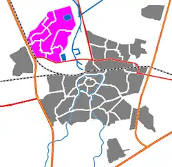 The area is much larger than the current urban area. In the north and the west there is a large meadow area of wet peat soils along the river Mark. The urban areas are mixed with the landscape.