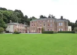 Haccombe is a village and former civil parish and historic manor, now in the parish of Haccombe with Combe, in the Teignbridge district, in the county of Devon, England. It is situated 2 1/2 miles east of Newton Abbot, in the south of the county. It is possibly the smallest parish in England, and was said in 1810 to be remarkable for containing only two inhabited houses, namely the manor house known as Haccombe House and the parsonage.[1] Haccombe House is a "nondescript Georgian structure" (Pevsner), rebuilt shortly before 1795[2] by the Carew family on the site of an important mediaeval manor house.[3] In 1881 the parish had a population of 14.[4] On 25 March 1885 the parish was abolished and merged with Combe in Teignhead and to form "Haccombe with Combe".[5]