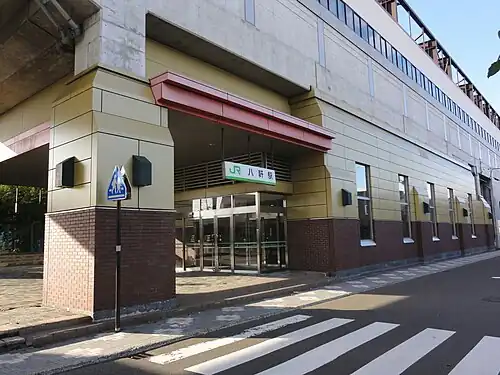 - ^ 八軒駅バリアフリー情報 [Hachiken Station accessibility information] (in Japanese). Japan: Hokkaido Railway Company. 2007. Retrieved 20 July 2012.