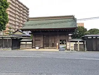 One gate built in 1797 from the palace has survived as a gate to the private residence of the descendants of Hachinohe Nambu clan, who received the title of viscount under the kazoku peerage system in the Meiji period. This Sumigoten Omote Gate (角御殿表門) is an Aomori Prefecture Important Cultural Property.[1]
