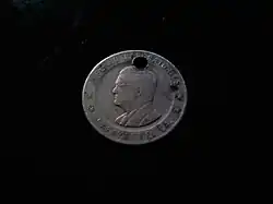 LeBlanc flooded the airwaves with testimonials to the powers of the seemingly miraculous (yet foul tasting) brown liquid and turned the jingle called "Hadacol Boogie" into a popular recording. Promotional items included various fliers, signs and clocks, a "Captain Hadacol" comic book,[8] T-shirts, lipstick, an almanac, plastic thimbles printed with the Hadacol logo, water pistols and cowboy-style holsters, glasses used for taking the diluted mixture, and a stamped metal token redeemable for 25¢ towards the purchase of any bottle of Hadacol (LeBlanc placed his own portrait on the front of the token, and the trademarked logo on the back).[9] These items, along with the Hadacol bottles and the boxes they were packaged in, are now sought-after items and fetch high prices among collectors of Southern memorabilia and medical quackery.