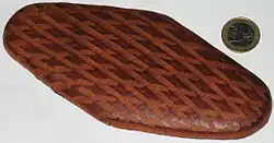 Haddekuche has often been made and produced in Frankfurt by pretzel vendors that roam the Apfelwein bars in the city[1] (primarily in Sachsenhausen, Heddernheim, and Niederursel) and other parts of the region, but availability of the pastry has diminished considerably over the years and some claim the pastry has almost gone extinct. One of the few bakeries left selling the pastry claims they only sell 30 of them a month across two branches, mostly to tourists.[2] The diamond pattern on the pastry closely resembles the pattern of another item strongly associated with Hessen—the Geripptes drinking glass for Apfelwein. Owing to the baking process and the need to protect the pastry from damage during transport, the edges of the pastry are rounded.