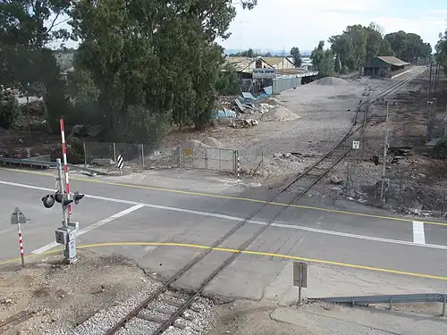 During the Sinai and Palestine Campaign of World War I, the Ottoman authorities in Palestine constructed the railway between the Jezreel Valley railway in Afula southwards via Jenin and Tulkarm to Lydda, where it connected to the Jaffa–Jerusalem railway and the Railway to Beersheba. The northwards extension from Tulkarm to Hadera allowed transporting timber from the forests around Hadera that was used as fuel and for infrastructure. The line was built as narrow gauge (1050 mm) like the rest of the Ottoman railways in the region, and was situated relatively inland to avoid the reach of naval guns from Royal Navy warships patrolling the Mediterranean coast. In the forests of Hadera, the Ottoman railway split into two branches, one ending about 1.6 km south-west from Hadera, the other about 2.5 km north from Karkur;[1] neither of these branches served any settlement, although they provided a link with the military bases that developed around Hadera.[2]