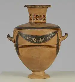 The modern scholarly term Hâdra vases (also Hadra vases) describes a group of Hellenistic painted hydriai. Apart from late Panathenaic prize amphorae, it is the only substantial group of figurally or ornamentally painted vases in the Greek world of the 3rd century BC (the rare Centuripe ware vases from Sicily continued even later).