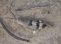- Hadrotettix trifasciatus (Say, 1828) — Three-banded grasshopper