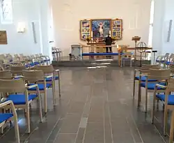 The chapel on the church's grounds is largely used for cemetery proceedings. It was built in 1979, after the original chapel had decidedly become too outdated. It was designed by J.K. Sørensen, who is also responsible for the church's bell tower.