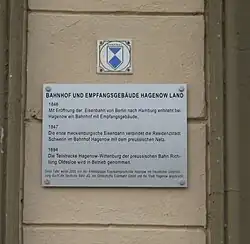 The fact that the Berlin-Hamburg railway ever made a 20 km detour via the comparatively small town of Hagenow, which then had 3400 inhabitants, resulted from the negotiations of the five states of Prussia, Mecklenburg-Schwerin, Denmark, Lübeck and Hamburg on the construction of the line. The Mecklenburg side under Grand Duke Frederick Francis II undertook in a treaty agreed on 8 November 1841 to subscribe half of the share capital and was able to achieve a route that ran close to the Mecklenburg residence in Schwerin.[3][4] Hagenow station was provided for the connection with Schwerin (and later with Rostock and Wismar). Original plans foresaw a railway station close to the town. Finally, however, the committee in charge of establishing favourable grades recorded "that a line from Berlin [...] Grabow, Ludwigslust touching Hagenow and Boitzenburg but running at a distance of 5/8 mile on the right and 1/3 mile on the left [. ..] is preferable to any other line" (note the Prussian-Mecklenburg mile was 7,532.5 metres long).[5]