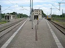 The mainline tracks of the Berlin–Hamburg line no longer have platforms. Regional trains towards Ludwigslust have to cross the track from Berlin so that they can stop on platform 1.