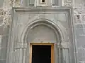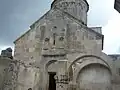 Haghartsin is thought to have been founded in the 10th century,[1] although the exact founding date is unknown.[2] It is assumed that kings of the Kiurikian dynasty, a branch of the Bagratuni dynasty, are buried in the partially destroyed sepulchre next to St. Gregory's Church, which contains two graves (formerly three) with partially legible inscriptions. According to another view, the Bagratuni kings Smbat II (r. 977–990) and Gagik I (r. 990–1020) are the ones buried there, although the historian Stepanos Asoghik reports that Smbat was buried in Ani.[3] The monastery was almost entirely destroyed by the Seljuks in the 11th century, but was then renovated by the Zakarid princes Zakare and Ivane from 1184. At that time, the Monastery Church of St. Gregory (Surb Grigor) was built, and simultaneously a žamatun was added on the western side. Ivane left a dedicatory inscription following the death of his brother in 1213:[4]
