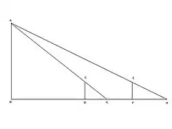 Using his principle of inscribe rectangle in right angle triangle for and , he obtained: