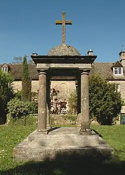 The Old Manor House at Poffley End was a small house built of Cotswold stone in the 15th century, and was enlarged to its present size in the 16th and 17th centuries.[2] It is a Grade II* listed building.[3] Delly End has a terrace of 17th century cottages. Swanhall Farm, east of Poffley End, was built in about 1700. Hailey Manor at Delly End is an ashlar-fronted early Georgian house of six bays.[2][4]