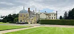 Hainton Hall has been the seat of the Heneage family since the reign of Henry III.[7] It is set in a park of 145 acres (0.59 km2), landscaped by Capability Brown about 1763.[8] The present hall was built in 1638 with later additions,[10] and a rebuilding and raising of the west wing, and the facing of the whole house in stucco, by Peter Atkinson in 1809. A porch was added by William Burn in 1875.[8] Behind the south front are Georgian interiors. The main interior hall, of two-story height with staircase to an upper landing, has plasterwork in Rococo style. The Morning Room has ceiling patterns perhaps by James Gibbs.[8]