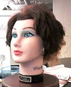 After the war, women started to wear their hair in softer, more natural styles. In the early 1950s women's hair was generally curled and worn in a variety of styles and lengths. In the later 1950s, high bouffant and beehive styles, sometimes nicknamed B-52s for their similarity to the bulbous noses of the B-52 Stratofortress bomber, became popular.[29] During this period many women washed and set their hair only once a week, and kept it in place by wearing curlers every night and reteasing and respraying it every morning.[30] In the 1960s, many women began to wear their hair in short modern cuts such as the pixie cut, while in the 1970s, hair tended to be longer and looser. In both the 1960s and 1970s many men and women wore their hair very long and straight.[31] Long, natural hair was also worn due to the emergence of counterculture movements such as that of the hippies who used such styles to symbolize their opposition to the norm. From the 1950s onward, various groups have pushed the norms for hairstyles as symbols of their unique ideology or identity. The Skinheads, who opposed the hippies, shaved off much of their hair. The punks of the later 1970s, meanwhile, wanted to cause outrage, styling their hair in unique ways (such as the mohawk) and dyeing it in unnatural shades.[32] Women straightened their hair through chemical straightening processes, by ironing their hair at home with a clothes iron, or by rolling it up with large empty soda cans while wet.[33]