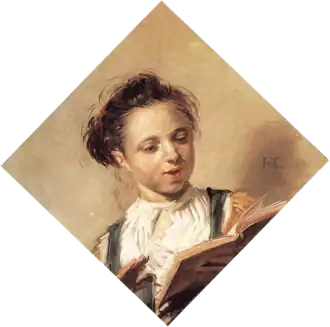 Low "messy" bun in an everyday domestic context in 17th-century Holland. Girl Singing by Frans Hals, about 1628
