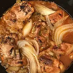 Haitian cuisine is a Creole cuisine that originates from a blend of several culinary styles that populated the western portion of the island of Hispaniola, namely African, French, indigenous Taíno, Spanish, and Arab influences.[1] Haitian cuisine has some similarities with "criollo" (Spanish for 'creole') cooking and similar to the rest of the Caribbean, but differs in several ways from its regional counterparts. Flavors are bold and spicy demonstrating African and French influences,[2] with notable derivatives coming from native Taíno and Spanish techniques.