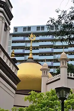 The Hajjah Fatimah Mosque (Malay: Masjid Hajjah Fatimah; Jawi: مسجد حاجة فاطمة; Arabic: مَسْجِد ٱلْحَاجَّة فَاطِمَة, romanizedMasjid Al-Ḥājjah Fāṭimah) is a mosque located along Beach Road in the Kampong Glam district within the Kallang Planning Area in Singapore. The mosque was designed in a mix of Islamic and European architectural styles, and completed in 1846. The mosque is named after an aristocratic Malay lady, Hajjah Fatimah, who commissioned its construction.[1]
